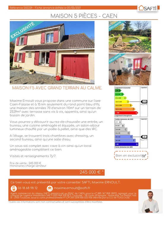 Devenir mandataire immobilier SAFTI. Contactez notre conseiller immobilier SAFTI Jean-Luc Guilbaud pour plus dinformations sur ce bien immobilier. 113 000 Honoraires cost vendeur Contactez votre conseiller SAFTI.
